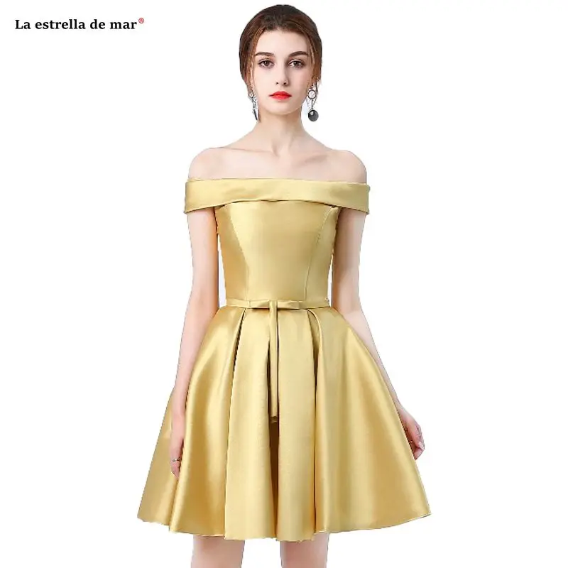 Wedding Guest Dress New Satin Boat Neck Short Sleeve A Line Gold